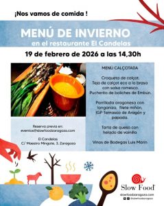 El pasado 19 de febrero de 2026, los socios y amigos de Slow Food Zaragoza y Teruel nos reunimos en el Restaurante Candelas de Zaragoza para celebrar nuestro tradicional encuentro de invierno. Esta cita anual tiene como objetivo fortalecer los lazos de la comunidad y poner en valor los productos locales en su momento óptimo de consumo.